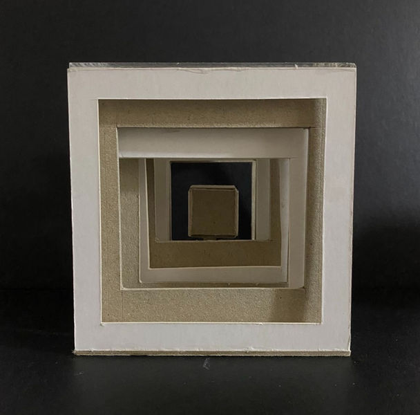 In this third model, planes where used to express and show what rhythm is. Rhythm was shown in every angle of this model through elevation views which are planes on front and back, and lines on left and right. As for the top view, rhythm is also shown through lines. The main focus is the planes that are in an alternative pattern while the sides which shows lines are in random patterns